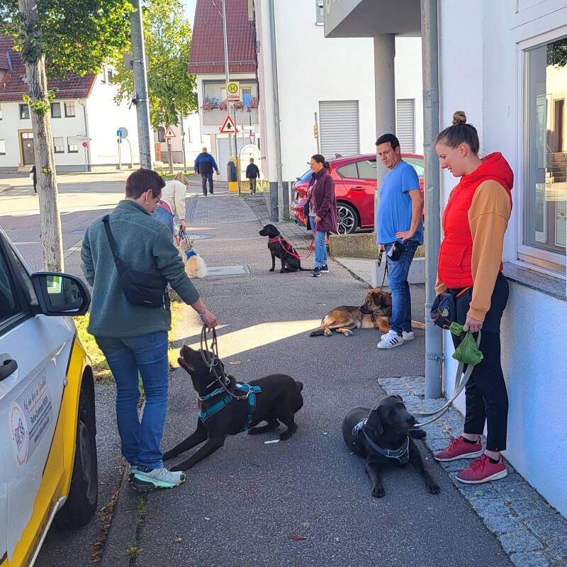 Neben dem Erlernen und Festigen der Grundkommandos, üben wir mit Euch auch außerhalb des Trainingsgeländes, wie zum Beispiel in der Stadt, auf dem Feld oder im Wald das sichere Führen Eures Hundes und stärken so die Bindung zwischen Mensch und Hund.